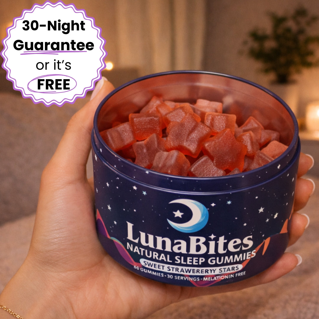 For tired-but-wired nights with racing thoughts or 2am wake-ups, LunaBites are natural, melatonin-free gummies that help you fall asleep easier, with most women noticing a difference in 7 nights.